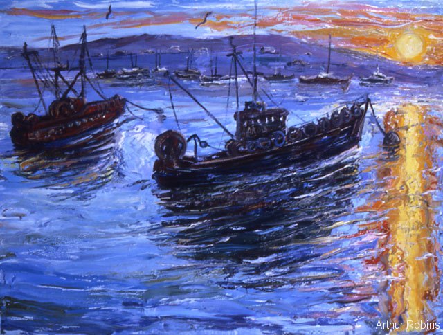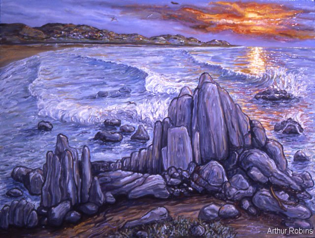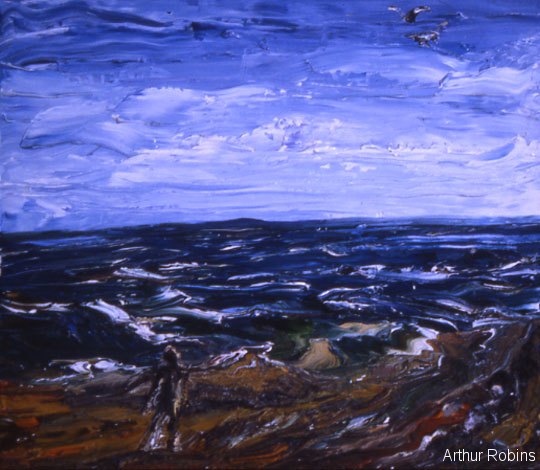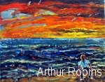 SEASCAPES. Paintings of seascapes, with sand, the sea and seagulls.